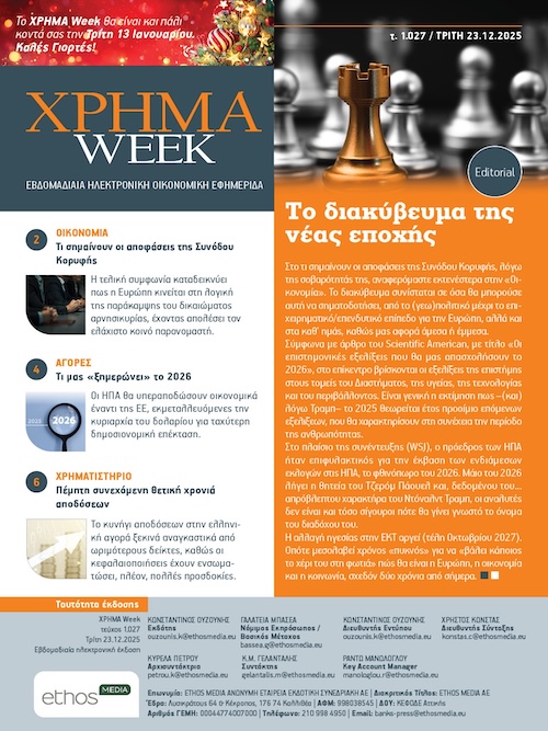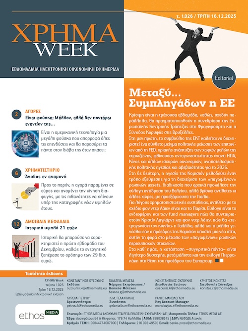 Τελευταία τεύχηInsurance WorldΤεύχος 126 Pharma and Health BusinessΤεύχος 93 ΧΡΗΜΑΤεύχος 479 ΧΡΗΜΑ WeekΤεύχος 1031 Coffee+BrunchΤεύχος 20 Ειδικές εκδόσεις / Εκδόσεις τρίτωνΟδηγός Ασφαλιστικής ΔιαμεσολάβησηςΈτος 2025 Greek Tourism & Hospitality GuideΈτος 2025 ΧΡΗΜΑΔΕΙΤΕ ΟΛΑ ΤΑ ΤΕΥΧΗ Τεύχος 479 Τεύχος 478 Τεύχος 477 Τεύχος 476 Τεύχος 475 Τεύχος 474 ΧΡΗΜΑ WeekΔΕΙΤΕ ΟΛΑ ΤΑ ΤΕΥΧΗ Τεύχος 1031 Τεύχος 1030 Τεύχος 1029 Τεύχος 1028 Τεύχος 1027 Τεύχος 1026 Insurance WorldΔΕΙΤΕ ΟΛΑ ΤΑ ΤΕΥΧΗ Τεύχος 126 Τεύχος 125 Τεύχος 124 Τεύχος 123 Τεύχος 122 Τεύχος 121 Pharma and Health BusinessΔΕΙΤΕ ΟΛΑ ΤΑ ΤΕΥΧΗ Τεύχος 93 Τεύχος 92 Τεύχος 91 Τεύχος 90 Τεύχος 89 Τεύχος 88 Coffee + BrunchΔΕΙΤΕ ΟΛΑ ΤΑ ΤΕΥΧΗ Τεύχος 20 Τεύχος 19 Τεύχος 18 Τεύχος 17 Τεύχος 16 Τεύχος 15 Παλαιότερες εκδόσειςAlive